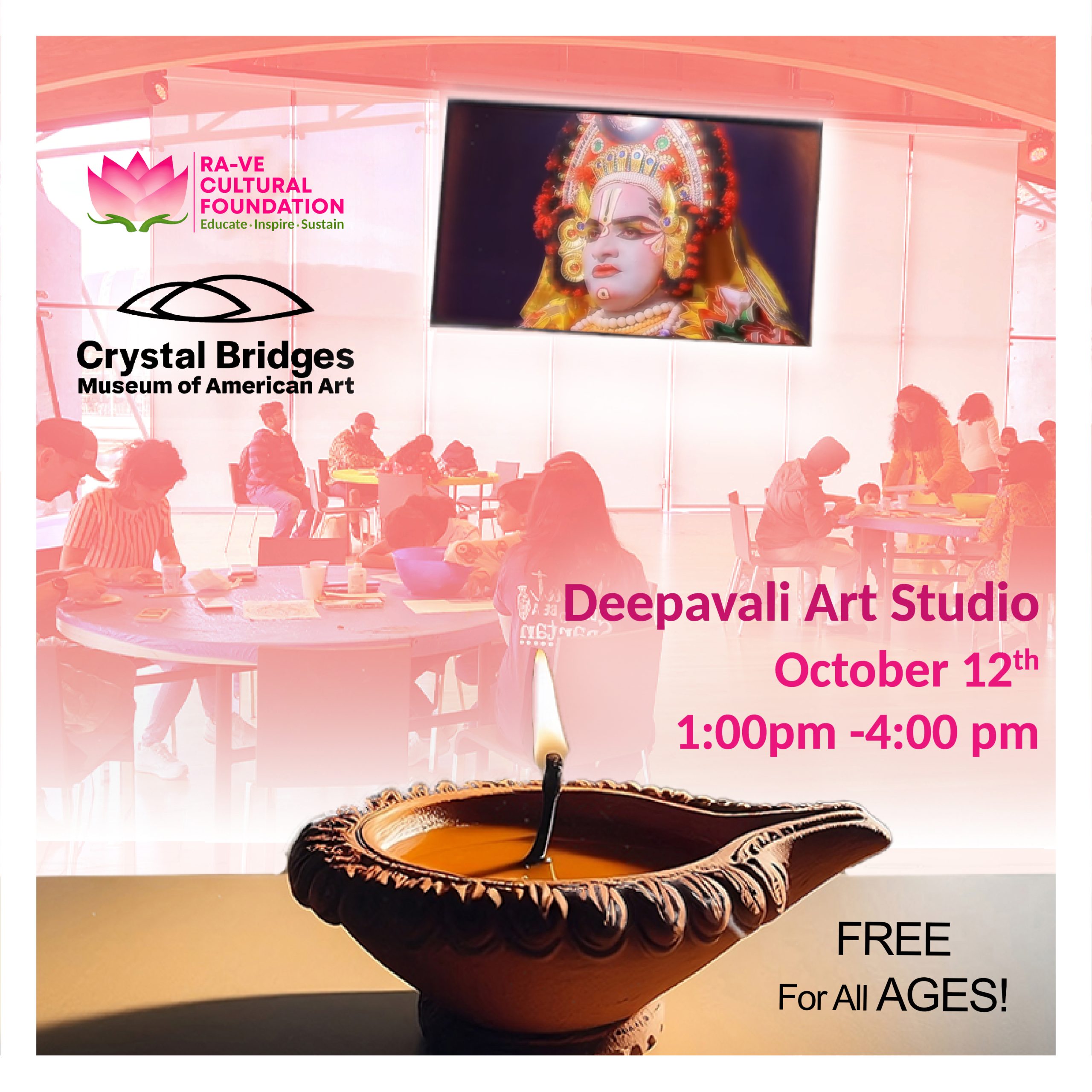 Ra-Ve Cultural Foundation, in collaboration with Crystal Bridges Museum of American Art, is excited to celebrate Deepavali (also called Diwali), the Indian festival of lights.