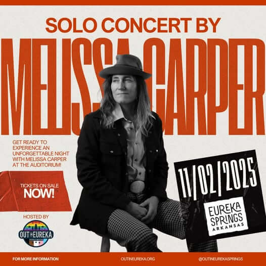 Melissa’s songs are heartfelt, often humorous, and always honest – a perfect fit for Fall Diversity Weekend, where storytelling, identity, and community take center stage. Join us for this unforgettable performance from an artist whose roots run deep in Eureka Springs.