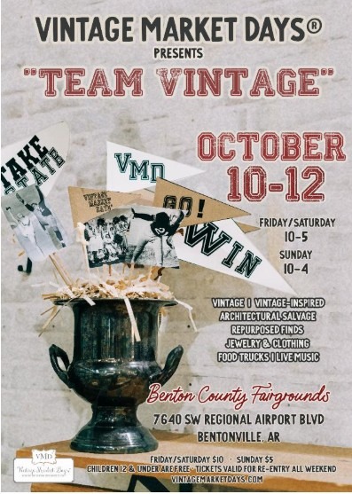 Vintage Market Days® is an upscale vintage and vintage-inspired indoor/outdoor market featuring original art, antiques, clothing, jewelry, handmade treasures, home décor, outdoor furnishings, consumable yummies, seasonal plantings and a little ...
