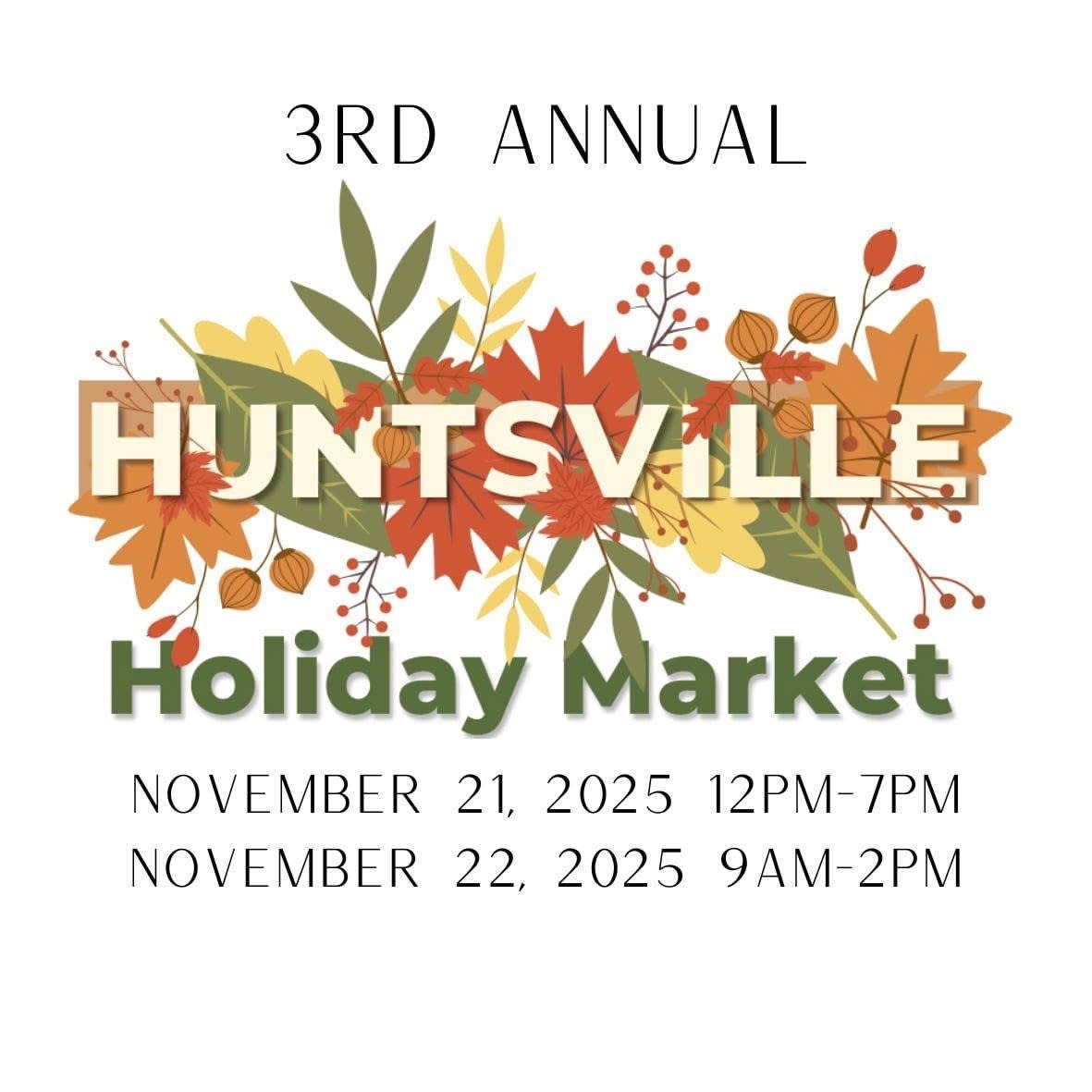 Huntsville: Fall Holiday Market Nov 21 November 21 @ 12:00 pm - November 22 @ 2:00 pm Huntsville: Fall Holiday Market Free
